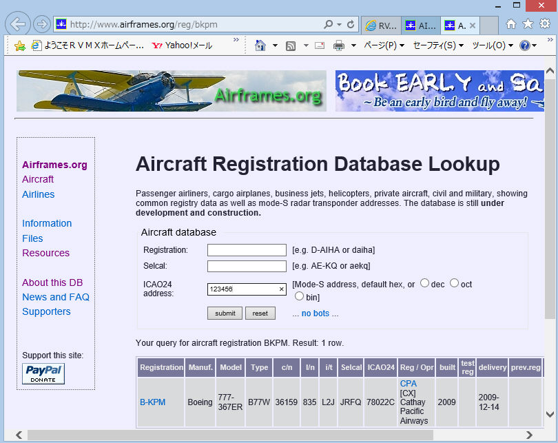 -15.2016年以降(但し、2016年は試用)でModeSの機体識別記号(Icaoコード)より航空機情報を自動で取得する機能を強化しました。但し、複数のWebより探すためWebの仕様変更などにより機能しなくなる可能性があります。