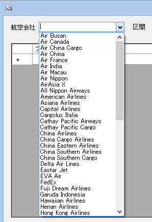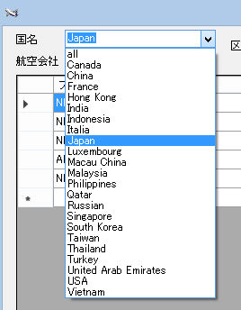 b.航空機型式をクリック 航空機の型式に対する一般性能値を表示