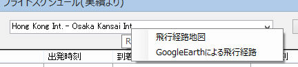 保守パルでマウスを右クリックでコンテキストメニューが出てきます。フライトスケジュール(実績より)をクリック