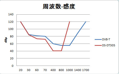 DS-DT305の方が感度は良いです(約10dB)。