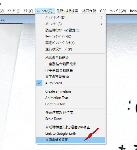 b.オプション->ツール->文章の傾き補正をクリック