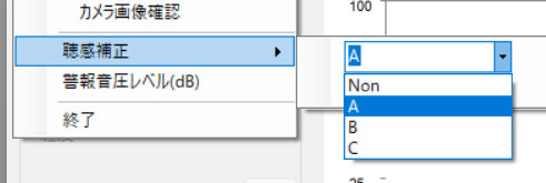 -3.聴感補正を実施(無し・A特性(騒音など用)・B特性・C特性(人間の耳に近い特性で警報用吹鳴試験など用))