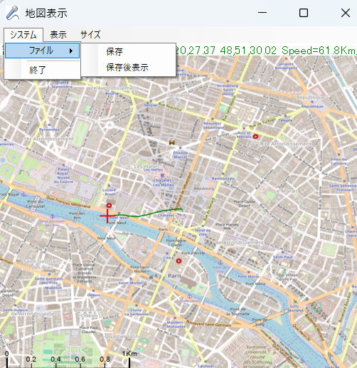 b-2.緯度経度表示 マウスの位置の緯度経度を表示します