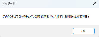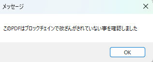 ブロックチェインによる改ざん確認がONされている状態で、PDFより読み込むとブロックチェインによる改ざん確認がされ、改ざんがないと判断すると