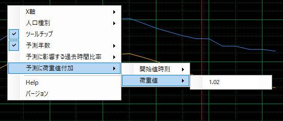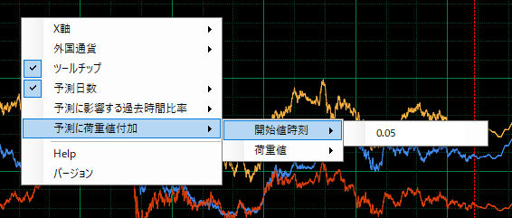 -5.予測に影響する過去時間比率 予測に影響する過去のデータの利用比率(1〜0)。1の時は全てのデータを利用、小さくなると最近のデータを利用。
