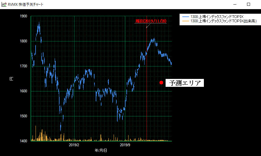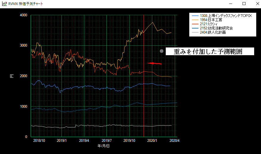 株価チャートでRVMX AIによる将来値予測β版(参考)