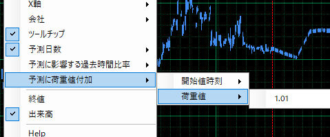 -5.予測に影響する過去時間比率 予測に影響する過去のデータの利用比率(1〜0)。1の時は全てのデータを利用、小さくなると最近のデータを利用。