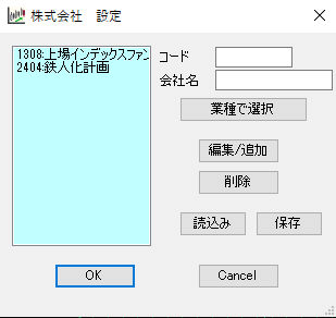 -5.編集追加 コードと会社名を選択会社リストへ追加します。