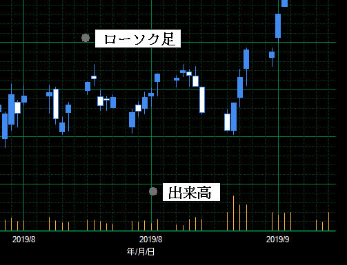 ローソク足+出来高表示例