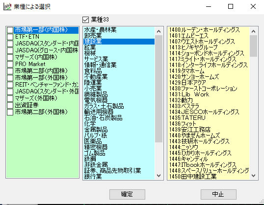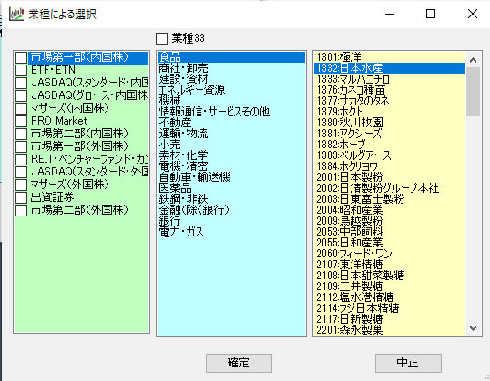 -2.業種を選択 33業種と17業種があり、業種33にチェックがついていると33業種となります。