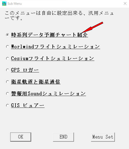登録したい場所を選択し、Menu Setボタンを押して、候補より各種時系列データチャートを選択