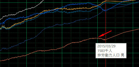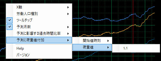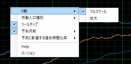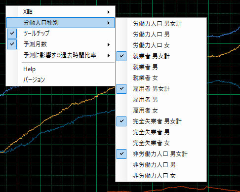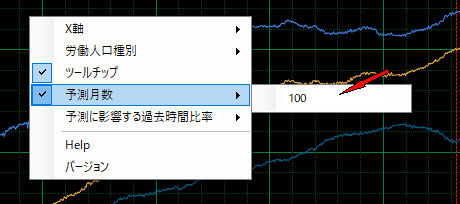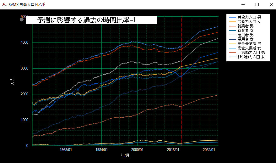 日本の労働人口変化の非直線予測画面例
