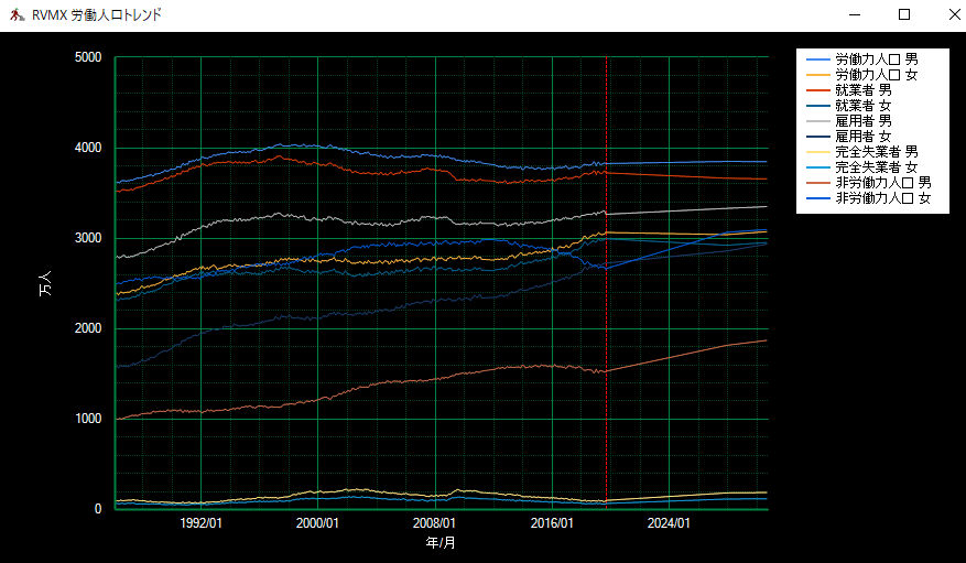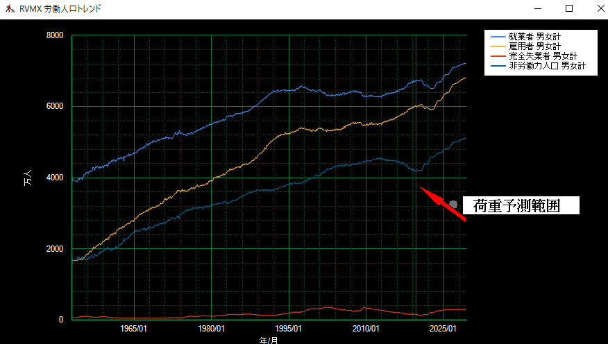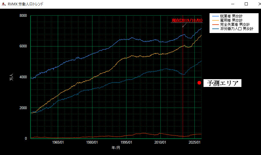 日本の労働人口チャートでRVMX AIによる将来値予測β版(参考)