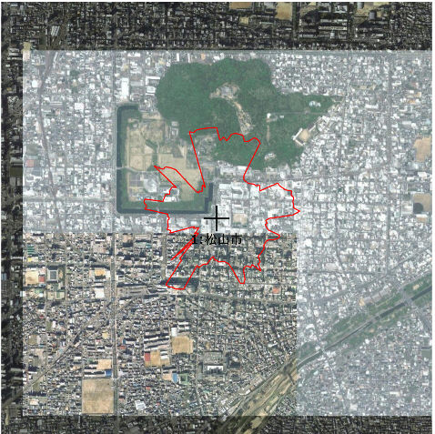 松山市で建物確認(大きい建物のみの検出となっています)