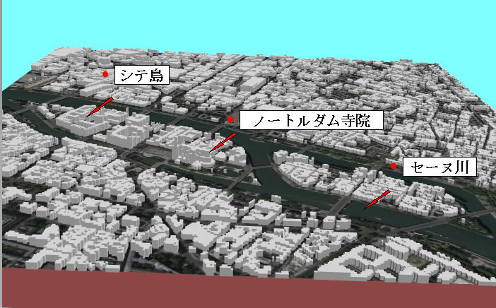 -3.パリのシテ島付近を3D表示の例