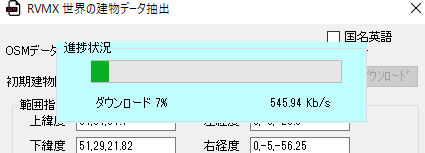 d.全世界対応建物高データの抽出は下記のプログレスバーが出ます。(局単位で最初にまとめて抽出)