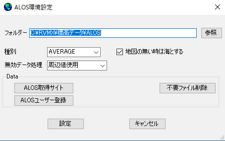 -1.ALOSの設定と必要エリアのALOSデータ(30m版)を事前に取得しておいて下さい。詳細は全世界対応建物高(構造物)データの抽出ツール参照。