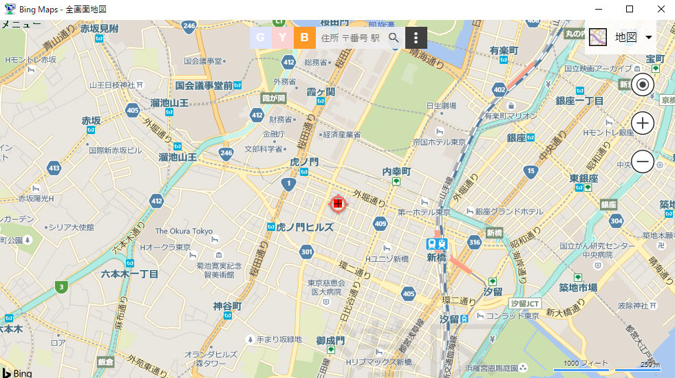 c.Bing Map Bing Mapのサイトは使えないので、代替えサイト経由となります。地図上で道路と衛星は切り替えができます。