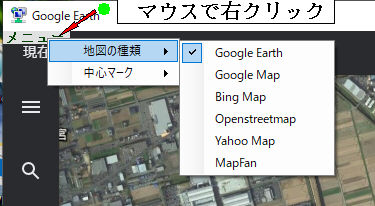 地図の左上の[メニュー]をマウス右ボタンでクリックし、地図の種類をクリック、選択した種類は保持されます。