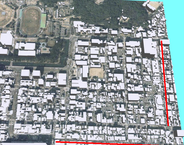 松山市内をGL高度も考慮して3D表示例