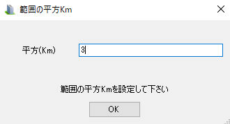 f.中心と平方Km 中心緯度経度(左上コーナー)、緯度経度が無いときは都市名指定と平方Kmを指定して緯度経度指定
