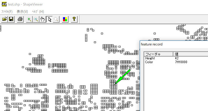 e.shp用コンタ処理 shp出力時に境界線を検出し建物に戻す。(但し、ポリゴンで無いので属性表示はできない)