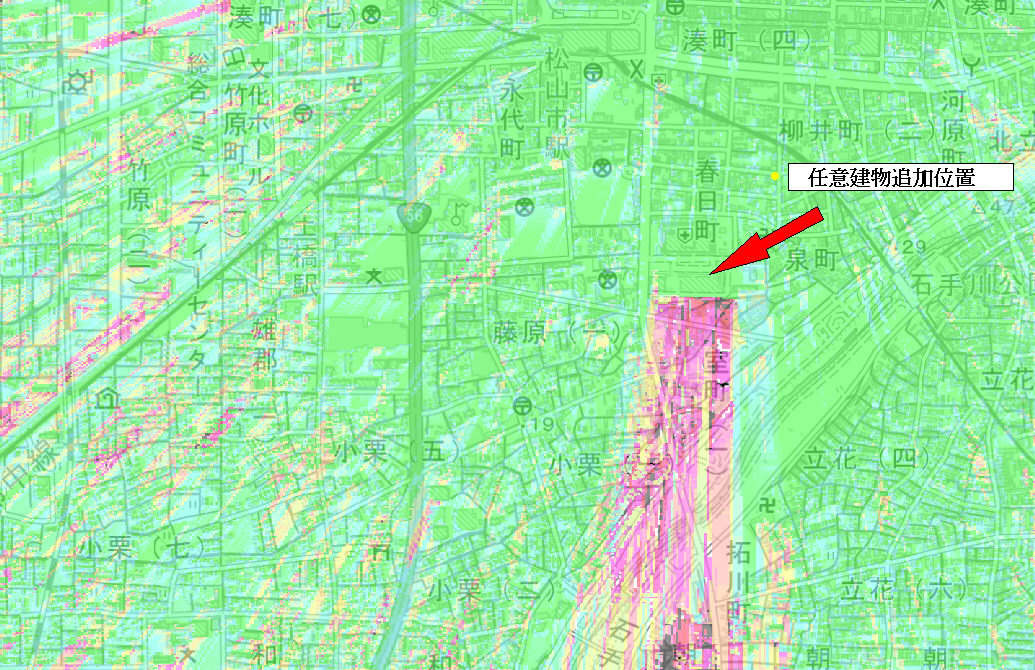 そのため今回、回線設計で設定の任意建物を全世界対応建物高読み取り時に参照する機能を付加しました。