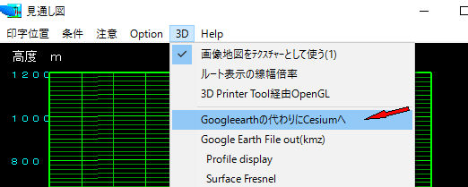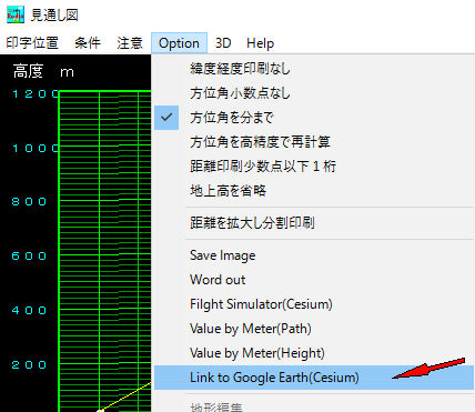 プルダウンメニューでOption->Link to GoogleEarth(Cesium)をクリック
