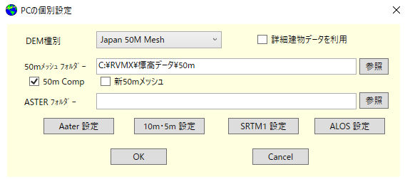 a.テキスチャ付のみ 国交省提供データには中心部のテキスチャー付と周辺のテキスチャー無しが有ります。この設定でタキスチャー付のみとなります。