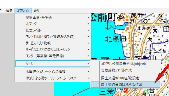a.GISViewerでオプション->ツール->国土交通省DBより地名作図をクリック