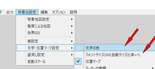 ・色指定 背景他設定->文字・位置マーク設定->文字の色をクリックし色を指定