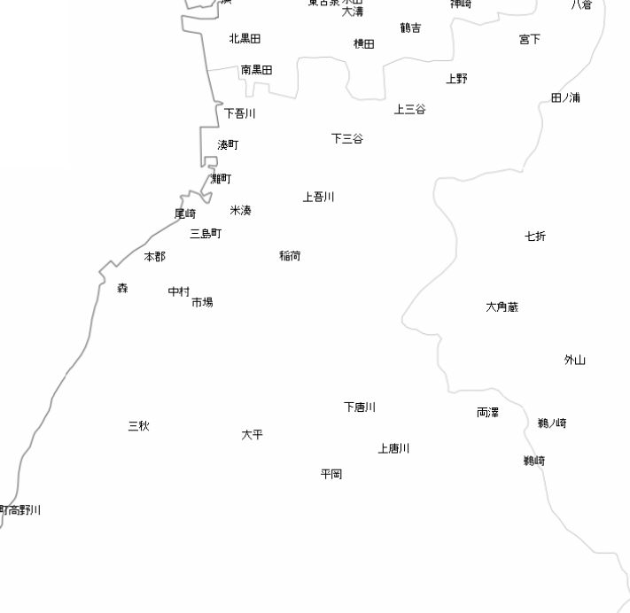 国土交通省が提供している住所のDBを利用して地名を地図に作図する機能(Class)です。