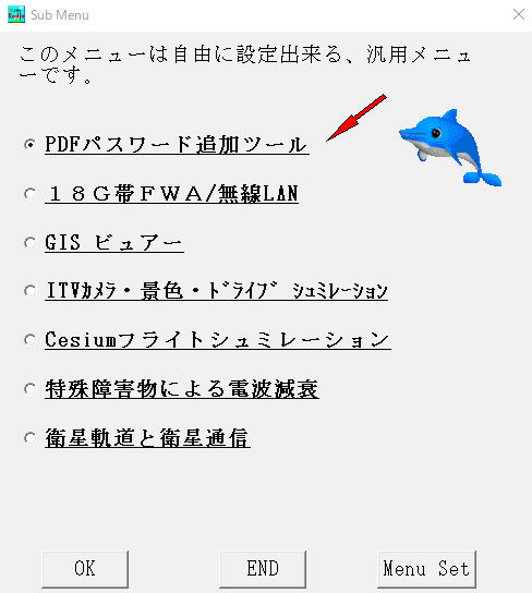 登録したい場所を選択し、Menu Setボタンを押して、候補よりPDFファイルへパスワードを追加ツールを選択