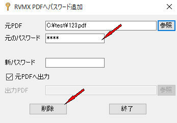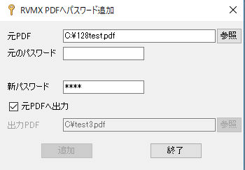 エ.元PDFへ出力 新パスワードを付加後の保存を元PDFファイルへ出力。