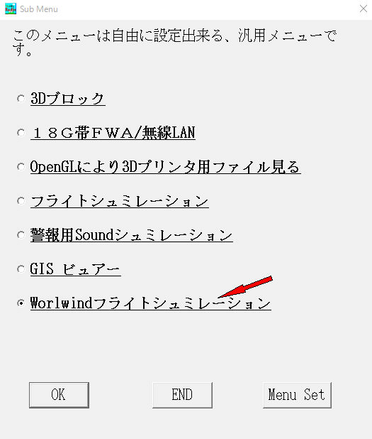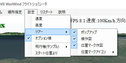 Worldwindフライトシュミレーションを選択し、OKポタンをON