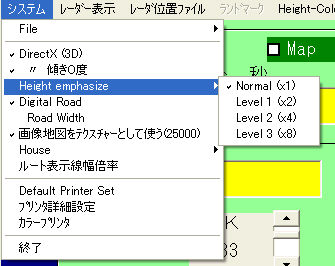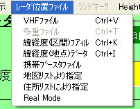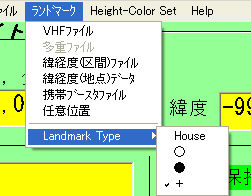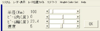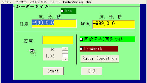 システム レーダ表示 レーダ位置ファイル ランドマーク Height-Color Set Help