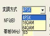 4.無線条件 -1.送信電力 dBmで入力 -2.変調方式 コンボボックスより選択(4PSK,16QAM,64QAM) |