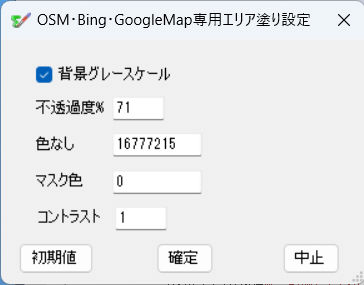 b.不透過度% エリア図を作図の不透過度%を設定(初期値71%)