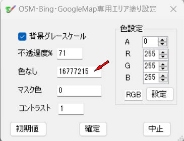 特定色を作図しない設定(初期値A=0,R=255,G=255,B=255[白色])
