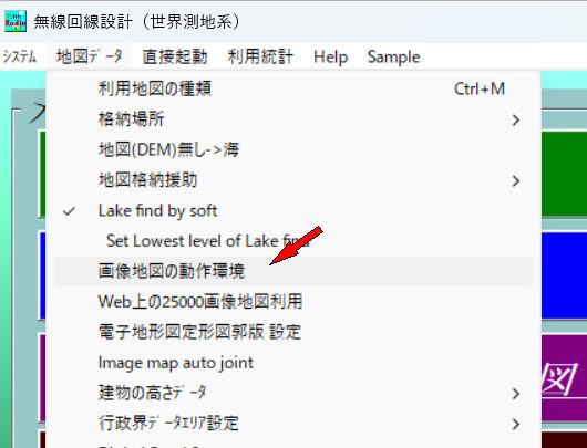 a.地図データ->画像地図の動作環境をクリック