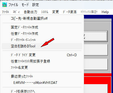 ・回線設計のVHF/UHFのファイルモード設定画面でプルダウンメニューのファイル->空白を詰めるToolをクリック