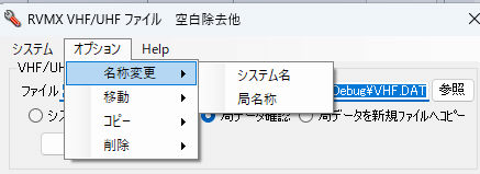 b-1.名称変更 データファイル内のシステムと局データの名称変更ができます