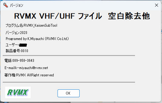 概要 RVMX 無線回線設計用VHF/UHFファイルの空白除去他Tool(β版)。