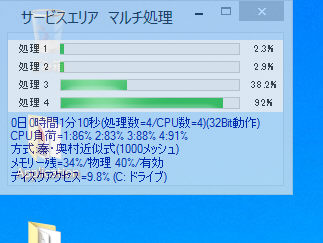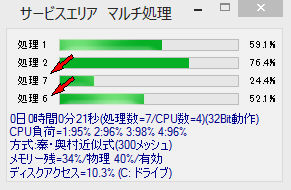 c.CPU負荷 各仮想CPUの負荷状況(マルチ処理をすると90%前後ぐらいまで上がります)