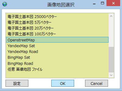 背景地図の選択画面が出ます