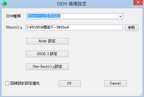f.回線設計優先 回線設計よりのDEM情報が優先します