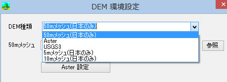 a.DEM種類 DEMの種類を設定します。(ここでは、高速化の性格上ローカルに格納しているDEMのみとなっています)