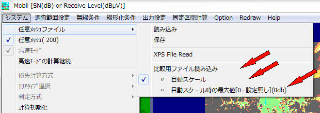 回線設計のサービスエリア図で、空中線の種類・高さ方向等の条件変更時の比較機能です。