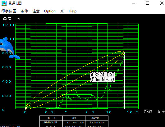 但し、多重の見通図で反射版を含めた複数区間の場合は正常に動作しません、各区間単位の見通図で確認してください。