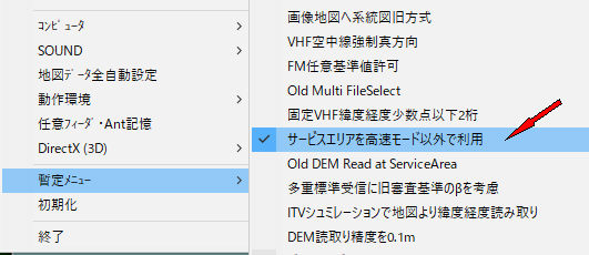 -1.最初の画面の暫定メニューのサービスエリアを高速モード以外で利用にチェック